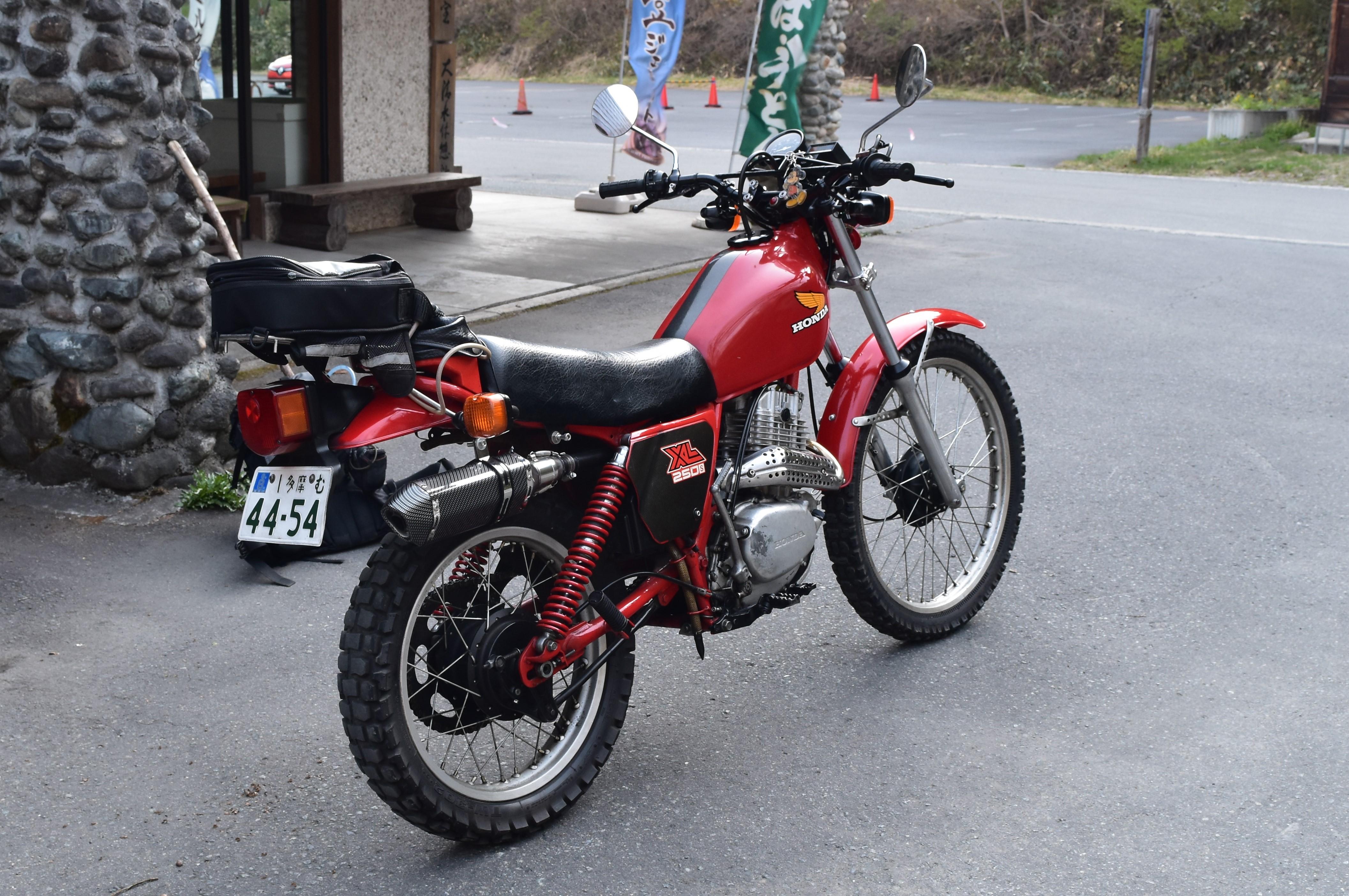 1972製ホンダSL250S、ヤマハのDT1誕生以降スズキ、カワサキも2サイクルトレールを発売、しかしホンダは4サイクルにこだわり世に送り出したトレールバイク、軽量化の為マグネシウムのクランクケースカバーやアルミホイールの採用等徹底した軽量化が図られている。それでも車重的に不利な為1年ほどしか生産されずついにホンダも2サイクル導入に踏み切りエルシノアが後継車となる