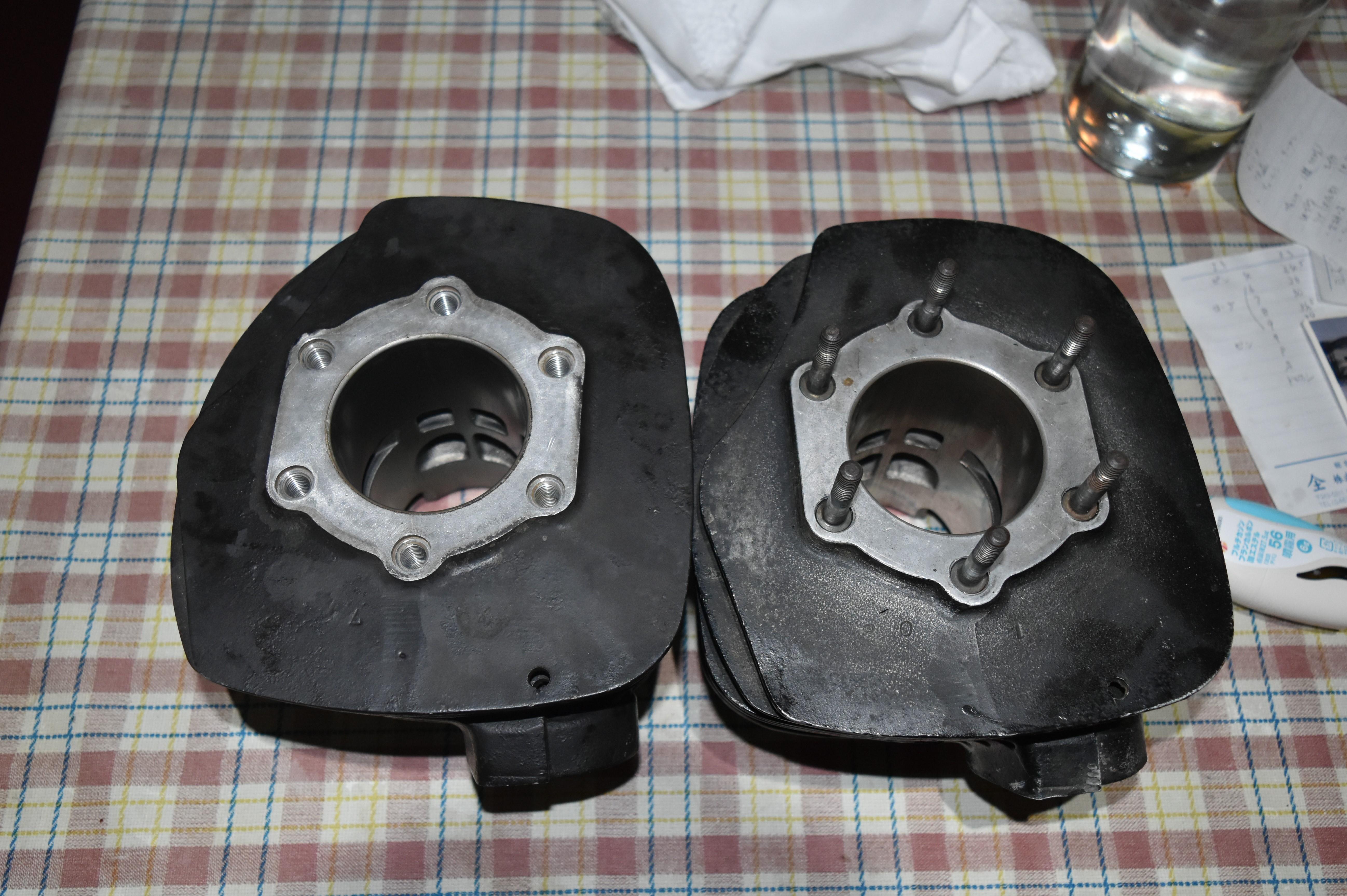 メッキシリンダーですので、基本的にホーニング等研磨作業ができません。以前は再メッキしてくれるところもありましたが現在では?状態(あるとも聞きますが)今回はせっかく外したの表面改質の為WPC処理を行ってもらいました。ヘッドボルトを外すのが大変でしたが専用のリムーバーを使って外します。左がWPC処理したもので右がノーマルなものです。写真ではわかりにくいですが処理したものはメッキ色ではなく薄いグレーとなっています。