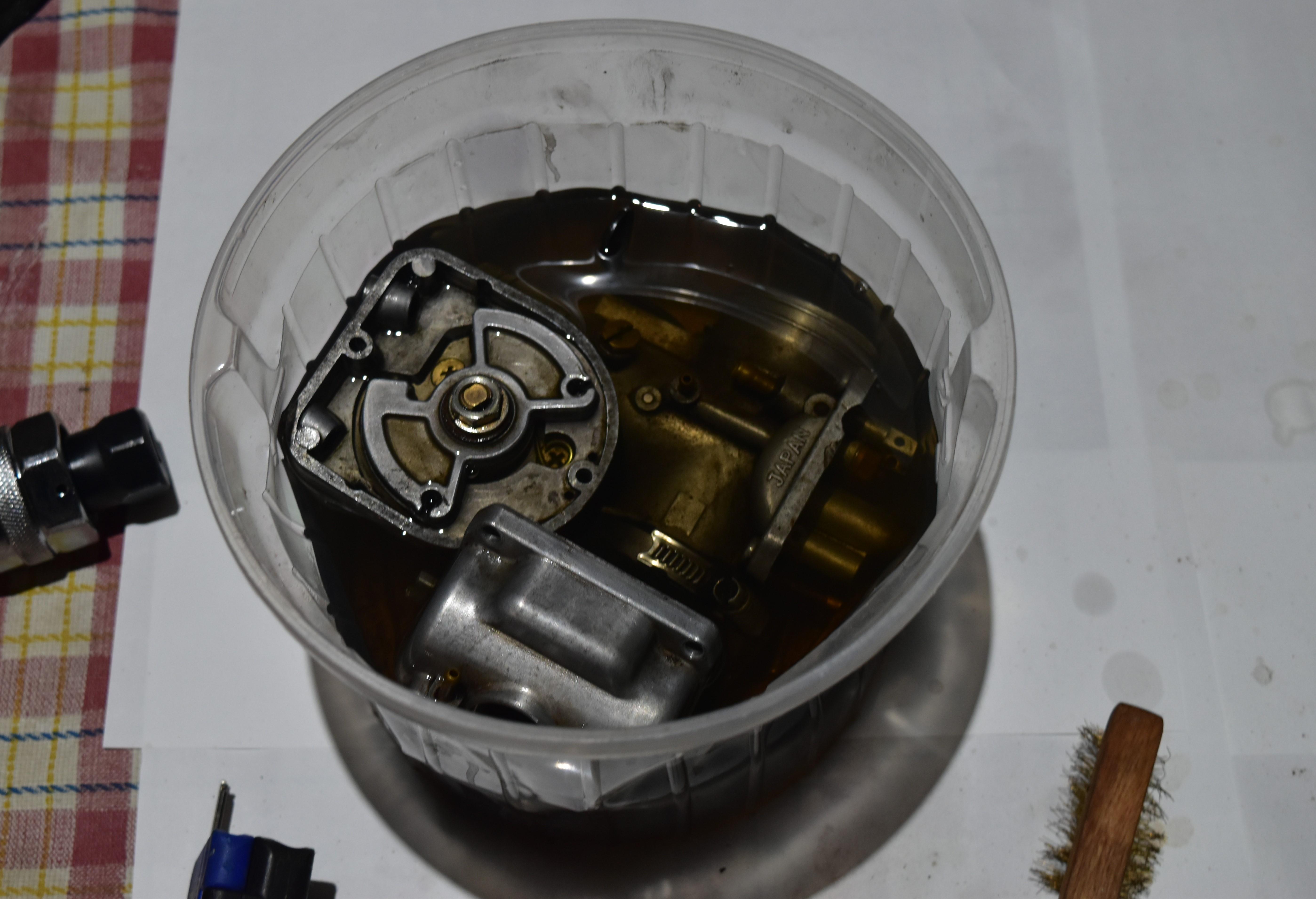 ついでに外したキャブレターを分解洗浄しました。分解してそのまま部品を灯油に漬け込みました。最後にパーツクリーナーで洗浄し乾燥させ組み立てます。